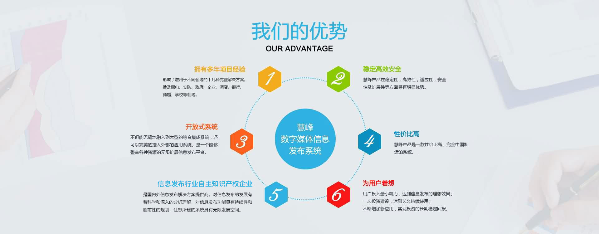 公司本著互惠互利,誠實信用的原則,真誠面對用戶,并愿與社會各界展開廣泛的合作。 公司現(xiàn)已是國內(nèi)的數(shù)字媒體信息發(fā)布系統(tǒng)解決方案提供商,產(chǎn)品涉及大中型企業(yè)、商業(yè)地產(chǎn)、各級黨政機(jī)關(guān)、軍隊、司法、信息通信、金融、醫(yī)療、教育、能源交通、公用事業(yè)領(lǐng)域。
